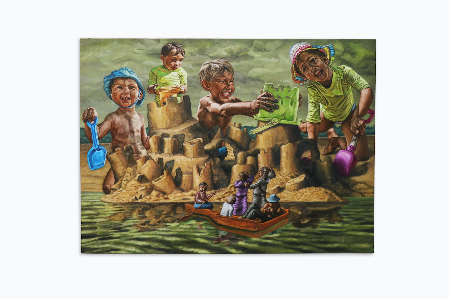 Les affiches ont fleuri dans l’Hérault et il est difficile de passer à côté. Une affiche simple, sur fond blanc, avec quatre noms : Robert Combas, Daniel Dezeuze, Hervé di Rosa et Claude Viallat. Ces artistes sont tous nés et habitent encore aujourd’hui dans le sud de la France. C’est justement dans le sud, à la Pop Galerie de Sète, que Pascal Saumade est parvenu à réunir ces quatre grands noms.